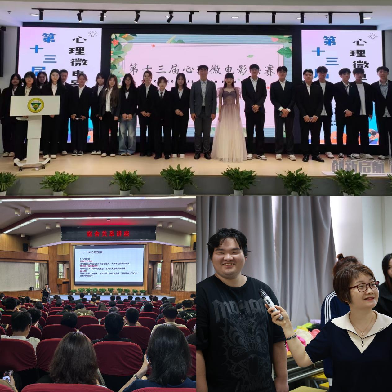 4月—5月,心理健康教育中心开展了心理微电影大赛初赛、复赛及决赛,比赛为学生提供表达内心情感、释放心理压力的平台,更通过专业指导与实践体验,有效提升学生的心理健康意识和自我调节能力。4月25日,由学生自编自演的爱情主题情景剧《心动解密》引发热烈反响。该剧通过三幕校园情感故事,生动诠释亲密关系中的沟通艺术与边界建立。专业心理教师现场结合剧情进行互动解析,引导学生在趣味参与中学习健康的恋爱观。此外,“屋檐下的温暖”宿舍关系专题讲座也吸引众多学生参与。中国心理学会注册督导师、原开云kaiyun官方网站心理健康教育中心主任、省教育厅心理健康教育专家指导委员会委员郭晋林老师通过案例分析、角色扮演等环节,指导学生掌握化解矛盾、建立支持性宿舍关系的实用技巧。