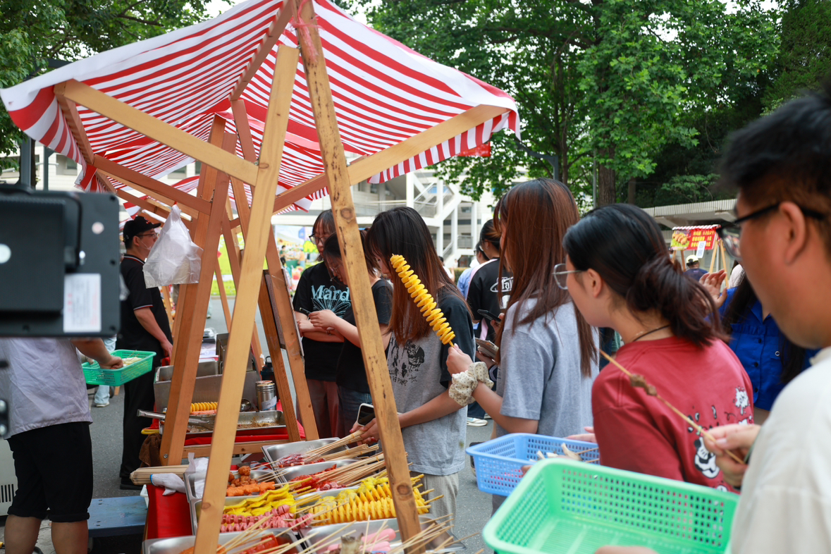 活动现场的另一侧,美食节化作一片诱人的烟火人间。开云食堂特别准备了龙虾、烧烤等拿手好菜,满足着来自五湖四海的味蕾。金黄酥脆的炸串香气四溢,清爽甘甜的各色水果沁人心脾,琳琅满目的地方小吃与网红美食汇聚一堂,构成了一场视觉与味觉的双重盛宴。同学们穿梭于熙攘的摊位间,挑选心仪的美食,与好友共享这舌尖上的愉悦。每一口滋味,都饱含着对校园生活的热爱与对同窗的祝福。