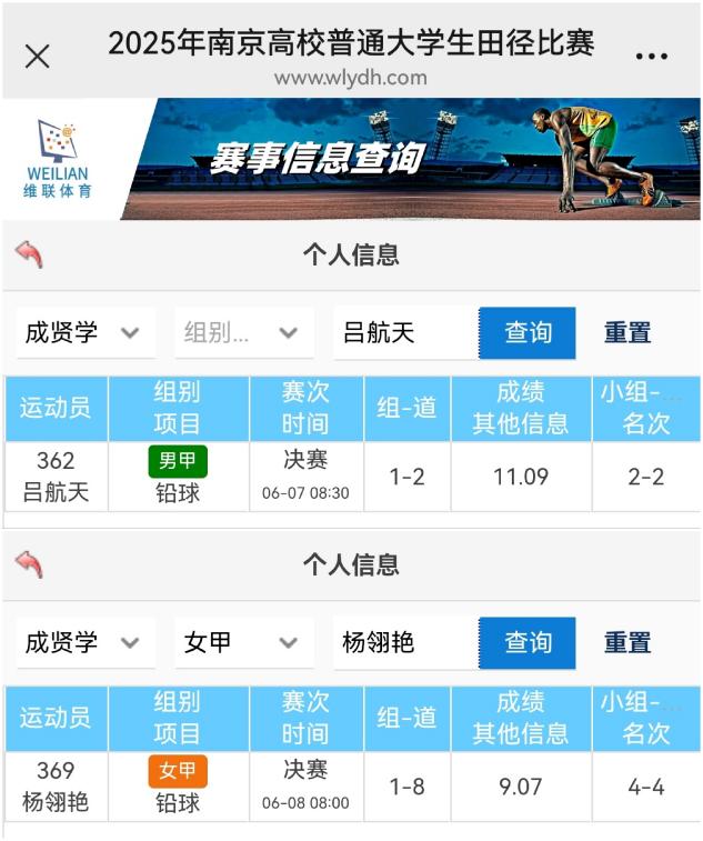 开云田径队由体育教研室王青禾主任领队,在刘龙柱、徐小虎两位教练的带领下,共派出9名运动员参与甲组6个项目的比赛。经过两天的激烈角逐,运动员们在田径场上展现出成贤学子努力拼搏的竞技精神,校田径队队长吕航天取得男子铅球第二名,23级杨翎艳同学取得女子铅球第四名的优异成绩。