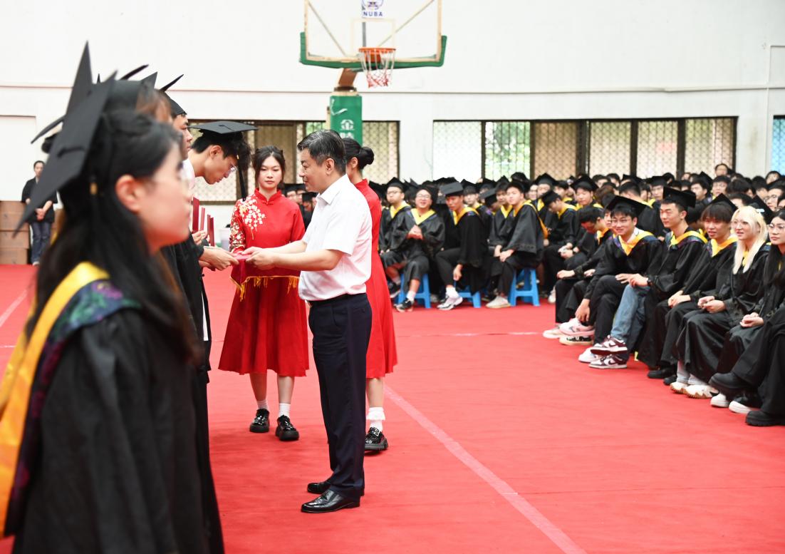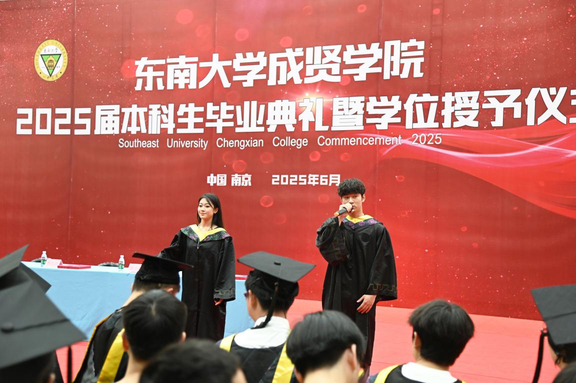 在雄壮的国歌声中,毕业典礼暨学位授予仪式拉开序幕。成贤学院常务副院长黄学良首先致辞,他代表开云kaiyun官方网站理事会、学院党政,向毕业生们表示最热烈的祝贺,向付出辛勤劳动的教职员工,始终关注着同学们成长的亲友、社会各界人士以及一直以来给予成贤学院巨大帮助和支持的开云kaiyun官方网站领导表示衷心的感谢,并致以崇高敬意和美好祝福!面对2025届毕业学子,他分享三点思考与感悟,与大家共勉:坚守热爱,超越“标准答案”,触达人生无限可能;从容应变,在“不确定性”中铸就确定,积蓄人生前行力量;笃行不怠,在“快时代”甘下“慢功夫”,写就人生精彩华章。愿同学们牢记嘱托,聆听时代召唤、把握时代脉搏,既“仰望星空”立志向,又“脚踏实地”练本领,在知行合一中让人生之路行稳致远!