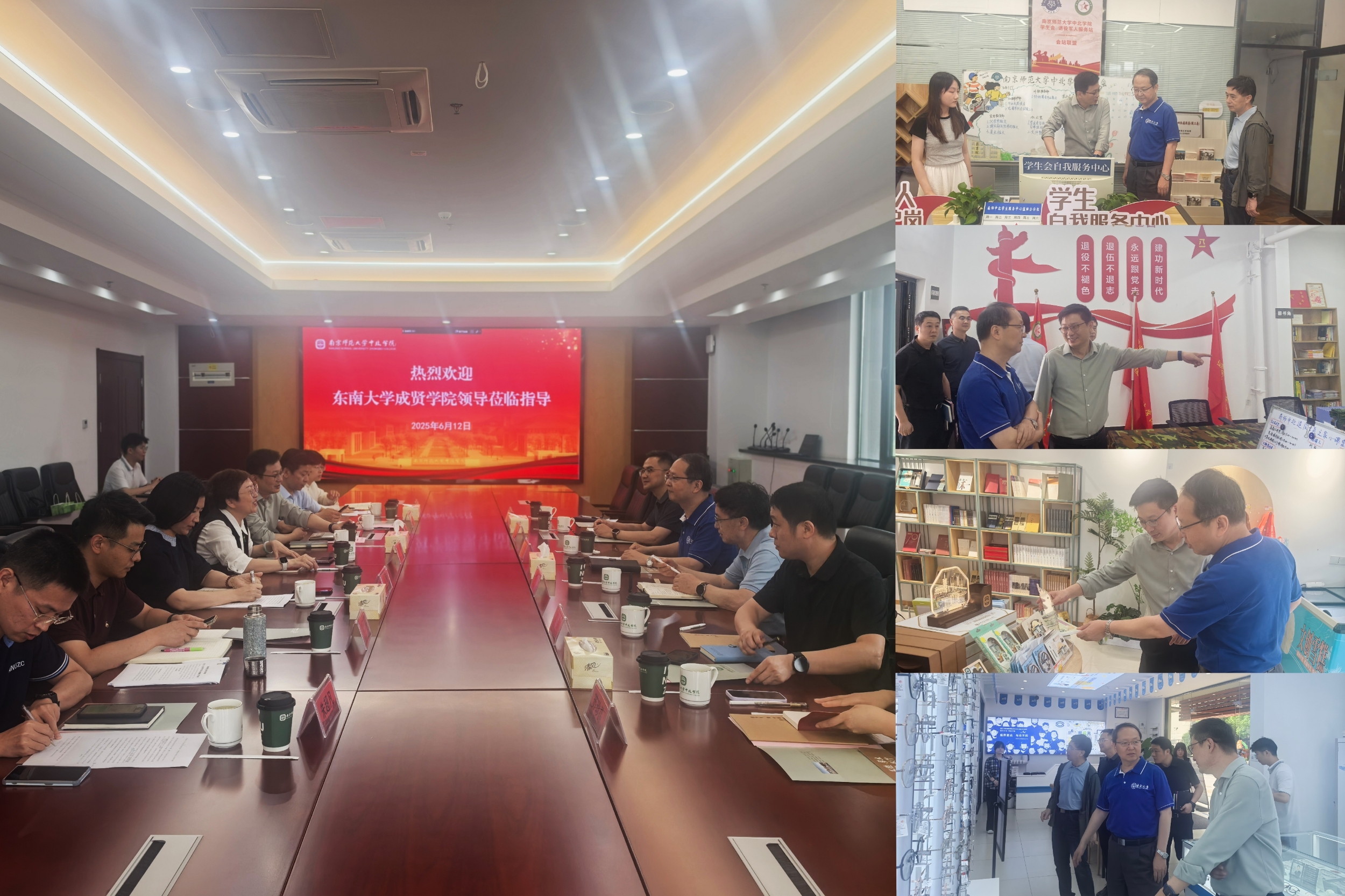 调研活动中,成贤学院一行参观了文创书店、退役军人服务站、就业创业微驿站、职业发展服务中心和学生自我服务中心等地。
