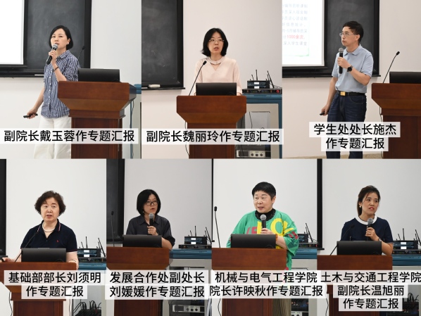 学生处施杰处长从辅导员队伍建设、思想政治教育、资助就业、心理健康等八大方面总结工作,明确将持续加强队伍建设与“一站式”学生社区建设。发展合作处刘媛媛副处长重点对学科建设、科研管理、国际合作等方面进行详细汇报。机械与电气工程学院院长许映秋则针对学院基本情况、存在问题及发展对策进行剖析,提出通过学科交叉融合、师资队伍建设等举措破解发展瓶颈。基础部刘须明部长从师资队伍、课程建设、科研发展上提出了后续建设思路。土木与交通工程学院温旭丽副院长以无人机应用技术微专业为例,详细介绍了建设背景、培养目标、课程设置、校企合作等相关准备工作。