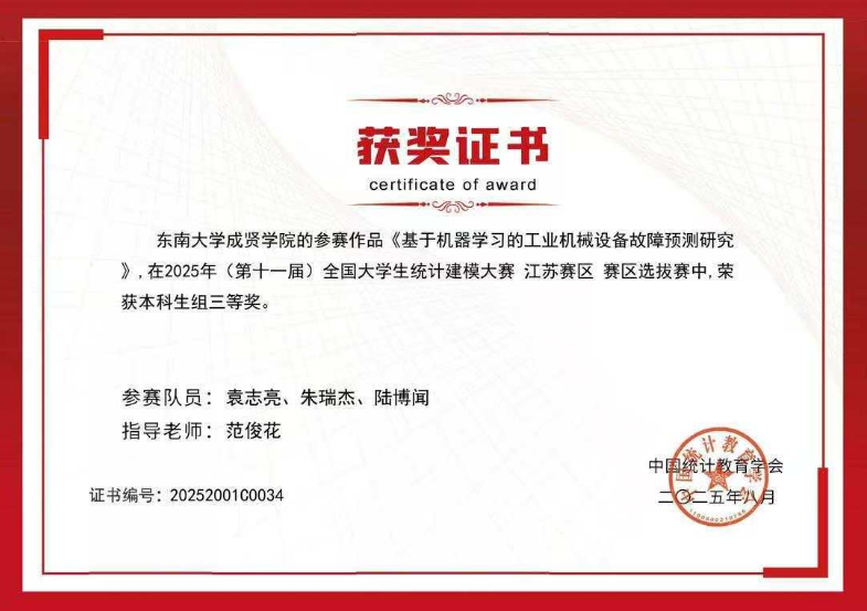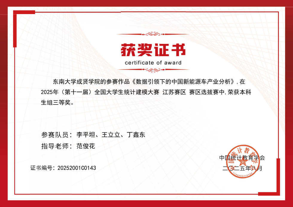 近日,2025 年第十一届全国大学生统计建模大赛全国组委会公布最终成绩,开云代表队从 885 所高校、92823 名参赛学生中脱颖而出,共斩获江苏省一等奖 1 项、三等奖 3 项的好成绩。