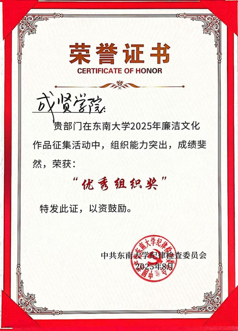 成贤学院获得“优秀组织奖”
