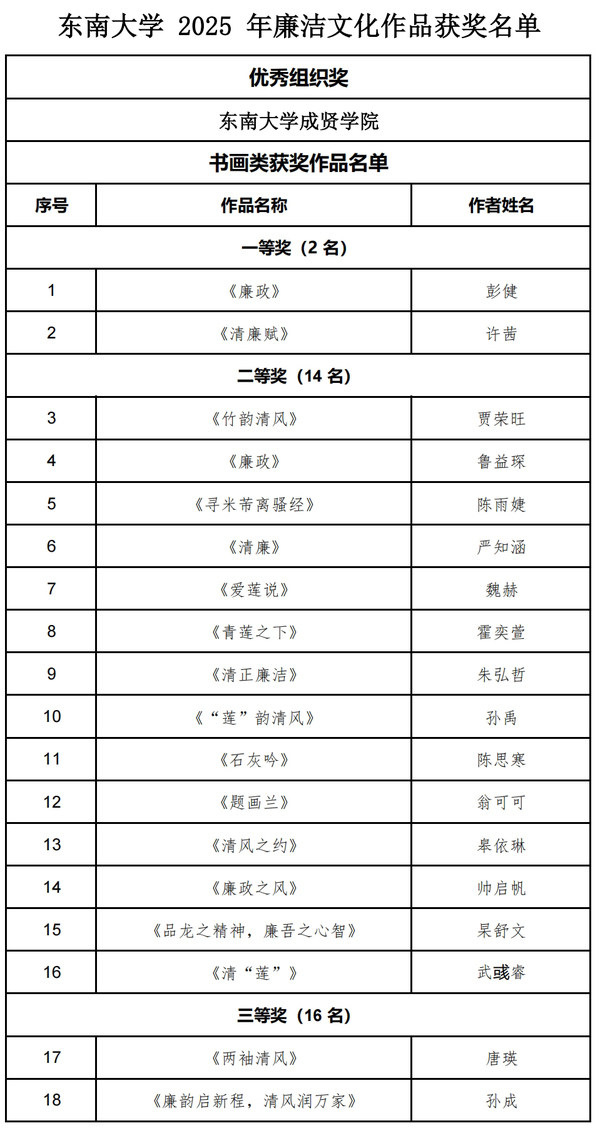 成贤学院在开云kaiyun官方网站 2025 年廉洁文化获奖作品评选中师生获奖名单