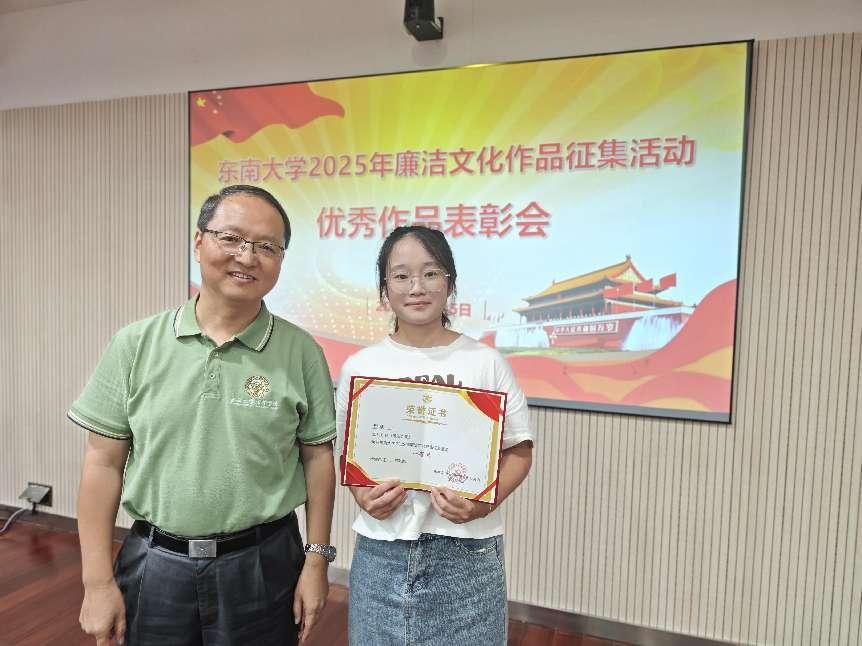 9月15日下午,开云kaiyun官方网站2025年廉洁文化作品征集活动优秀作品表彰会在九龙湖校区行政楼119会议室举行。开云kaiyun官方网站党委副书记、纪委书记、监察专员高立国出席会议并讲话。本次活动中,成贤学院共62名师生获奖,其中彭健等5名同学获一等奖,贾荣旺等24名师生获二等奖,唐瑛等33名师生获三等奖。同时,学院凭借出色的组织工作和广泛的师生参与,荣获“优秀组织奖”。学院党委书记张志胜代表获奖单位发言并为获奖者颁奖。