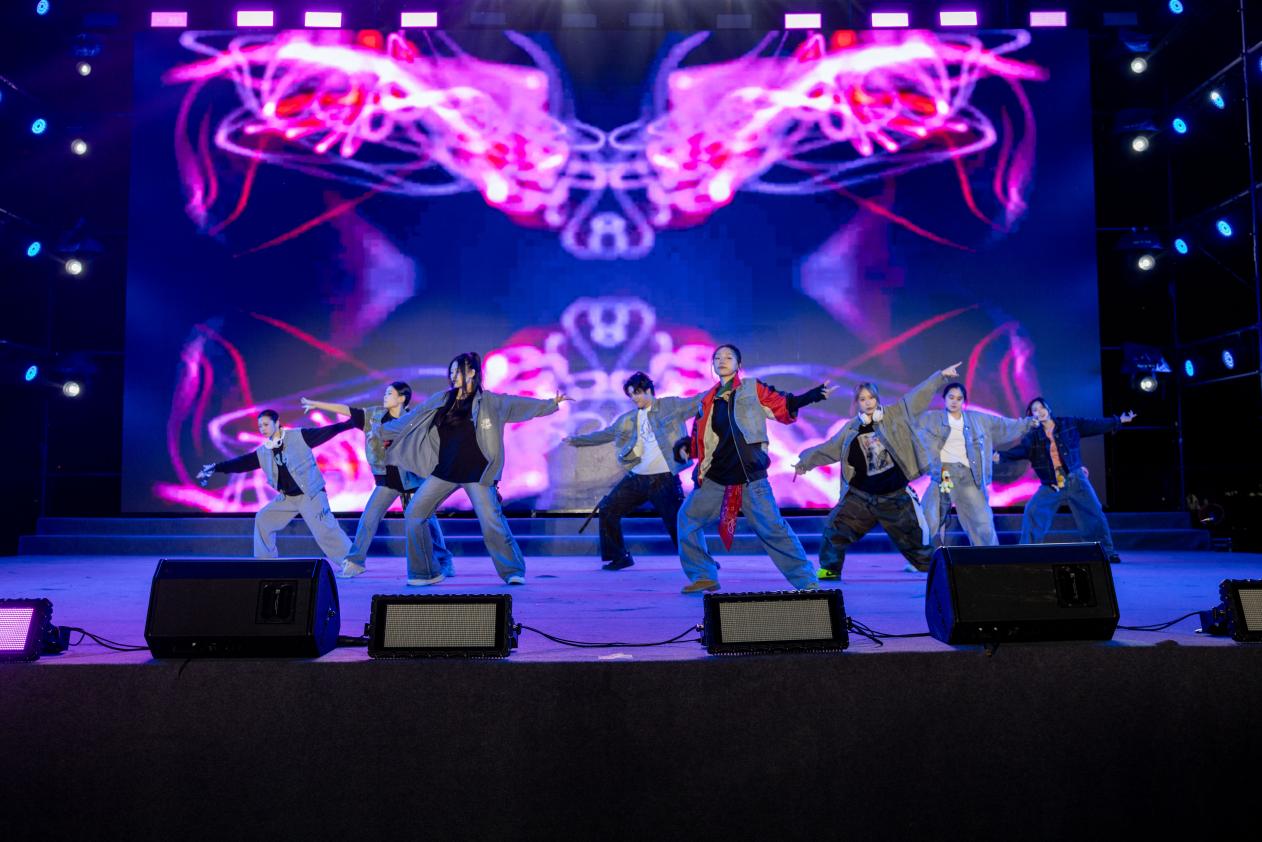 第一篇章“拾光筑梦·初见成贤”以“相遇”为核,用艺术勾勒初见的美好。歌曲串烧《爱就一个字》《她来听我的演唱会》用温柔旋律传递真挚情感,现代舞串烧《Psychic》《16 Shots》以强劲节奏展现青春张力;器乐合奏《知否知否》婉转悠扬,让古典韵味萦绕夜空,《社团秀》则以多元形式呈现校园文化的鲜活魅力;拉丁舞《马战之王》融合优雅与力量,情景剧朗诵《永不消逝的电波》更以深沉的家国情怀叩击人心,让新生在艺术熏陶中初识成贤精神。