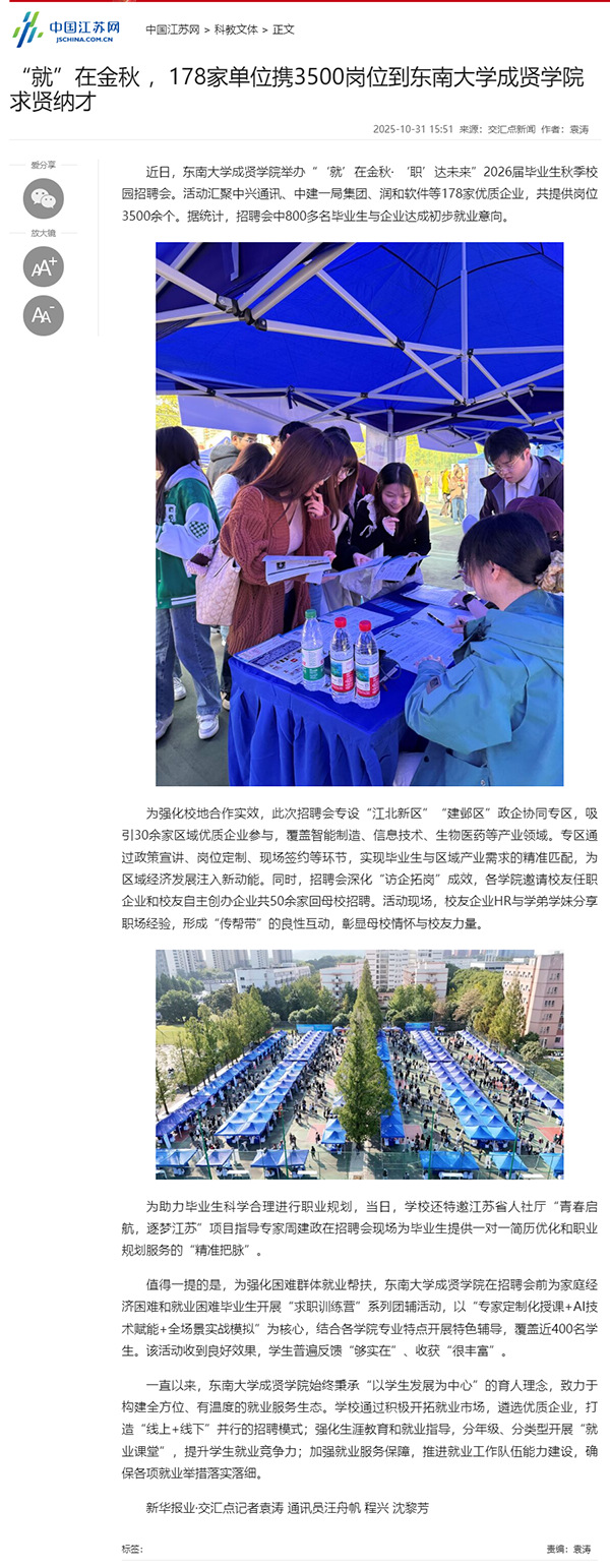 【中国江苏网】“就”在金秋,178家单位携3500岗位到开云kaiyun官方网站求贤纳才