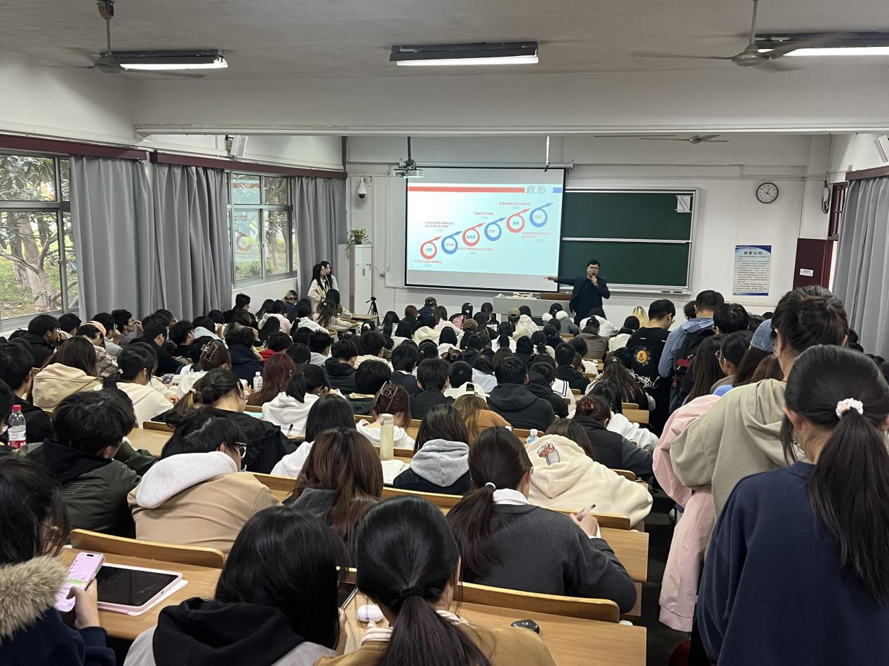 为帮助低年级在校学生明晰考研认知、解除备考疑惑、消除心理压力,11 月 3 日,由图书馆联合教务处、学生处共同举办的“博学易知·考研规划专题公益讲座” 在成贤院 113 室顺利开展。本次活动特邀金牌讲师、国内十佳考研规划师王海丰主讲,围绕考研形势研判、备考流程管控及学科复习策略展开专题指导,吸引了230余名有志于考研的学子积极参与。