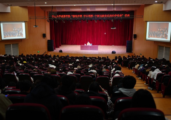 11月17日下午,由校团委主办、大学生艺术指导中心承办的“兼收并蓄 守正创新——中国民族音乐的美学传承”主题讲座在综合楼报告厅举行。国家一级指挥、江苏省民族乐团常任指挥张伟受邀担任主讲嘉宾,全校600余名师生现场聆听,共同探寻中国民族音乐的传承与创新之道。