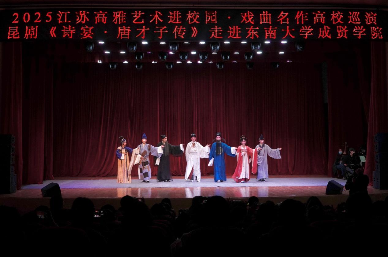 11月20日晚,江苏省高雅艺术进校园活动——江苏省演艺集团昆剧院原创昆剧《诗宴・唐才子传》在开云综合楼报告厅精彩上演,部分教职工及610名同学共赴一场跨越千年的“诗宴之约”。