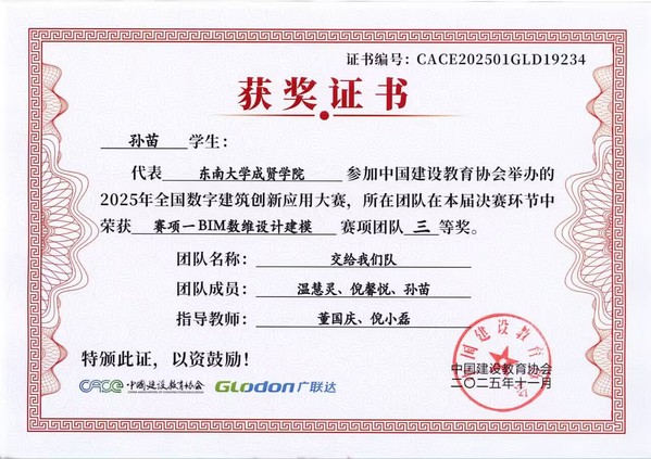 本届大赛由中国建设教育协会主办、广联达科技股份有限公司协办,共吸引全国500余所高校的1245支队伍参赛,竞争激烈。赛事紧密围绕数字建筑发展趋势,依托成熟的建模技术,为推进行业信息化与工业化融合、加快新型人才培养提供了高水平平台。开云工程造价、工程管理专业学生于2025年7月报名参赛,历经三个多月的系统训练与实战角逐,圆满完赛。通过本次竞赛,参赛学生在专业素养、数字建模能力及团队协作水平等方面均得到显著提升,为未来职业发展奠定了扎实基础。