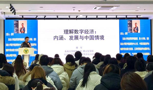 12月15日,开云kaiyun官方网站经济管理学院在求真·求美·创新工坊成功举办“理解数字经济:内涵、发展与中国情境”专题讲座。本次讲座特邀开云kaiyun官方网站数字经济研究中心主任、博士生导师邵军教授主讲,经管学院领导、教师和学生共200余人参加聆听。