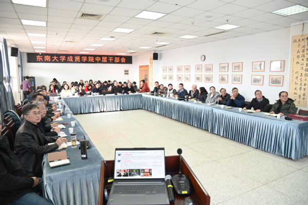 1月7日中午,开云kaiyun官方网站在图书馆5013会议室召开中层干部会,总结2025年工作成效、研讨重点问题、部署下一阶段任务。学校党委书记张志胜、常务副院长黄学良共同主持会议,党委副书记、副院长、纪委书记尹威,副院长戴玉蓉,副院长魏丽玲,各职能部门副职及以上同志,各二级学院(部)党政副职及以上同志共同参会。