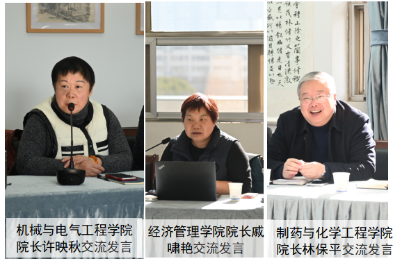 参会人员围绕师资队伍、专业设置、学科布局、科研成效等相关工作进行了热烈的交流讨论,并从不同视角提出想法和建议。尹威副书记、戴玉蓉副院长、魏丽玲副院长就相关问题和大家进行了交流。